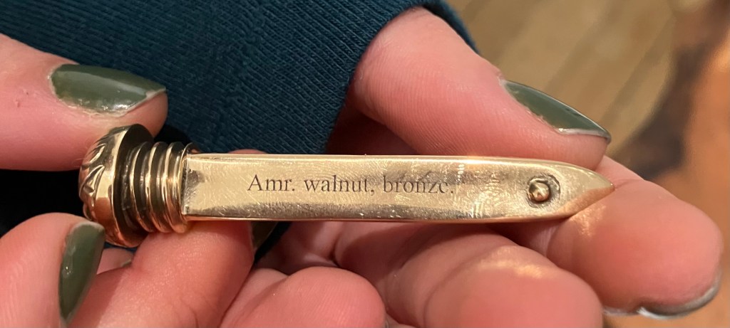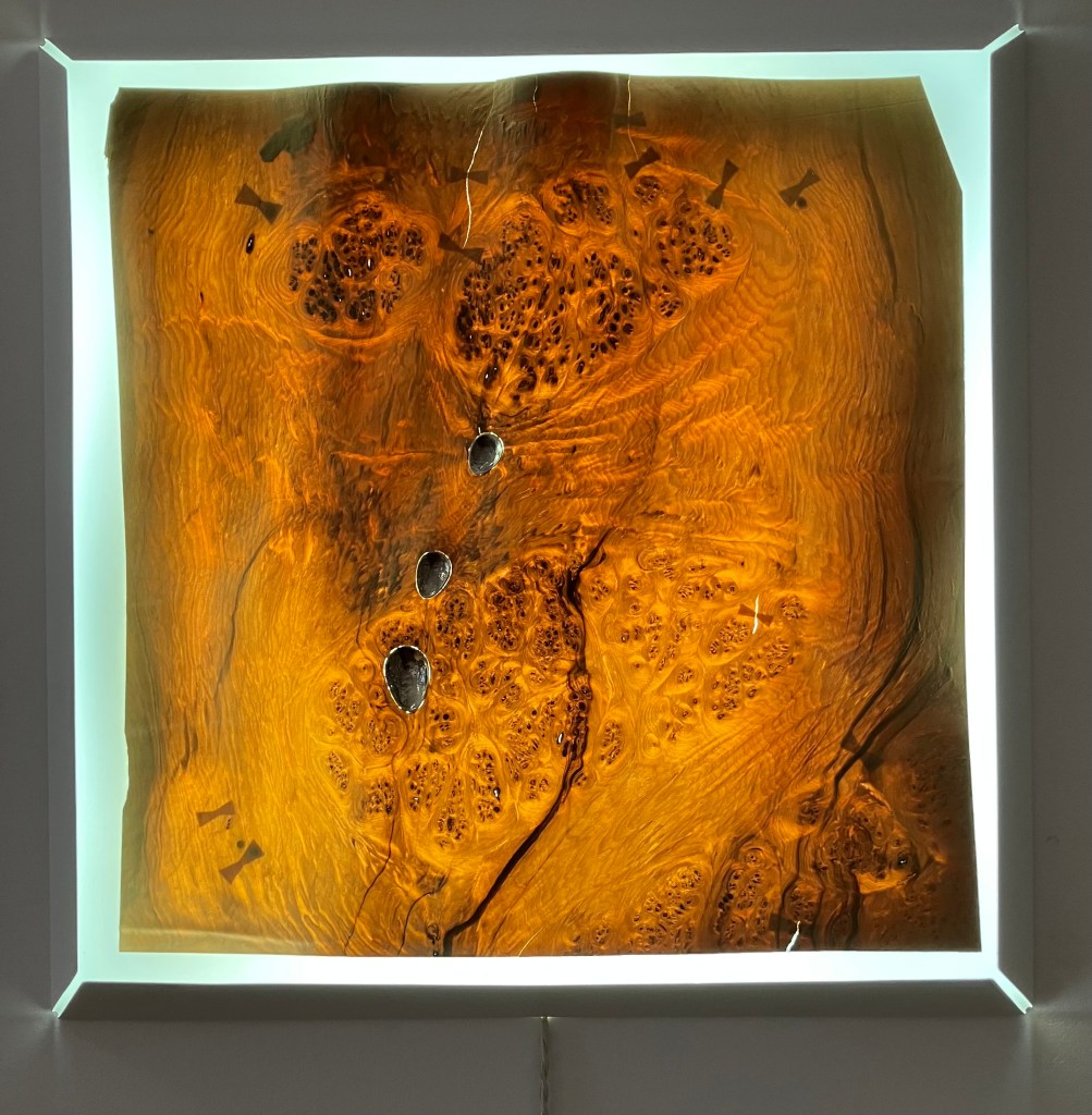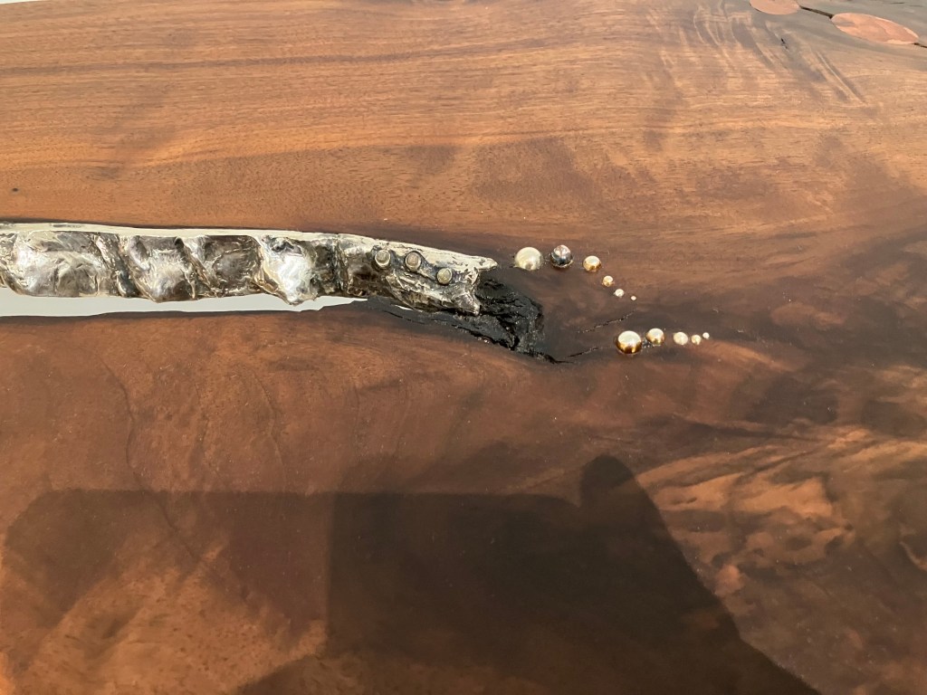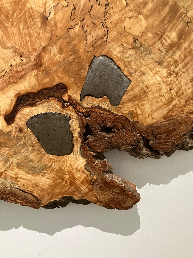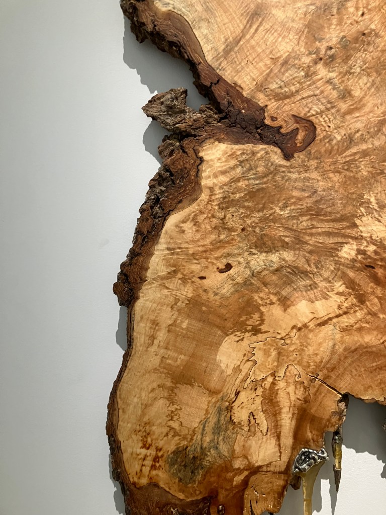 Que voit- on ? Du bois très ancien , ou rare , transformé en mobilier ou en tableau , des parties , des failles sont renforcées par de l’argent, certaines fissures sont juste indiquées par des sortes de papillons sombres .Cette danoise a un profond amour pour les arbres ,et veut révéler leur âme dans ces pièces uniques ,ponctuées parfois de diamants .Elle combine naturel et préciosité , pour susciter admiration et sens de la responsabilité par rapport à la nature .Chaque pièce contient une sorte de longue vis en argent , cachée sur le côté et qui en est la signature .