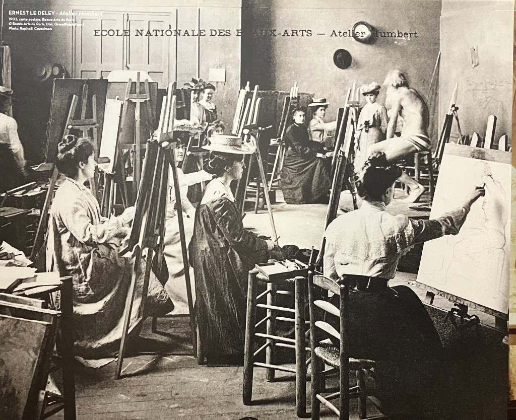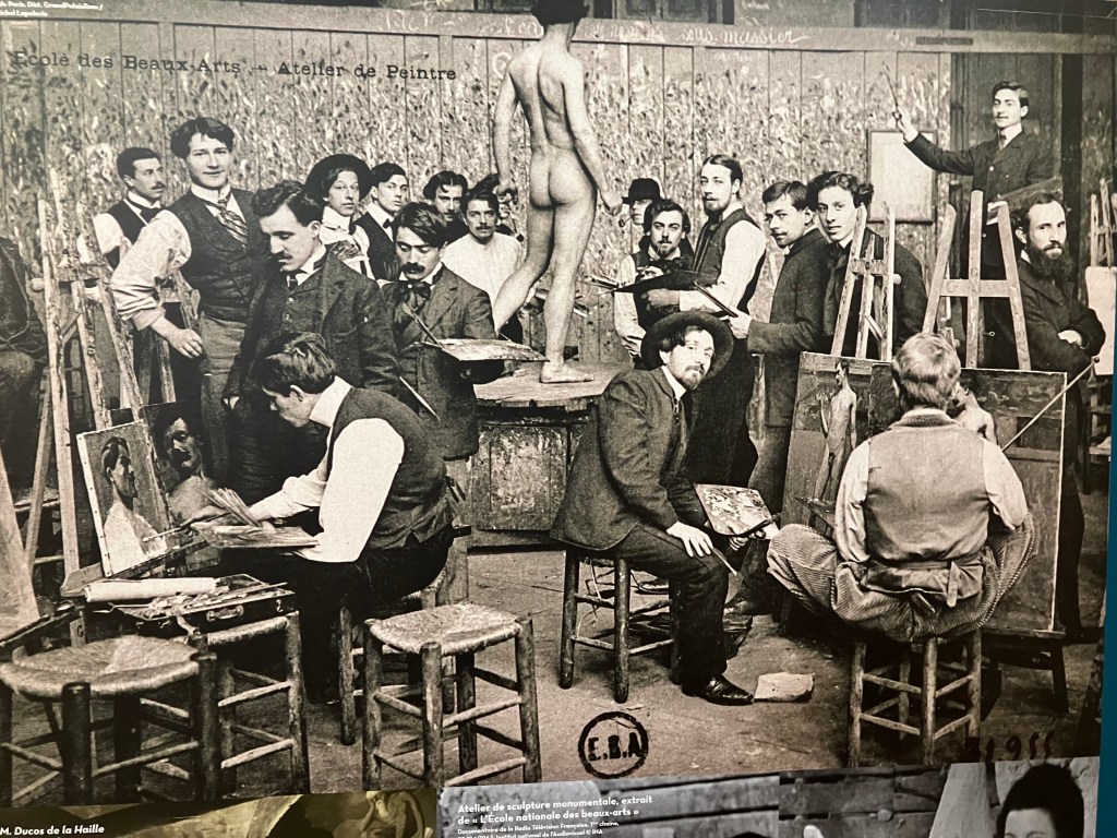 On y déchiffre dans ce fouillis l’histoire de cette école très académique , ses concours , examens , classements , et les débuts de peintres devenus ensuite célèbres ou non , dont , vous le devinez , peu de femmes puisque elles n’y ont été acceptées qu’à partir de 1897 dans des ateliers séparés .