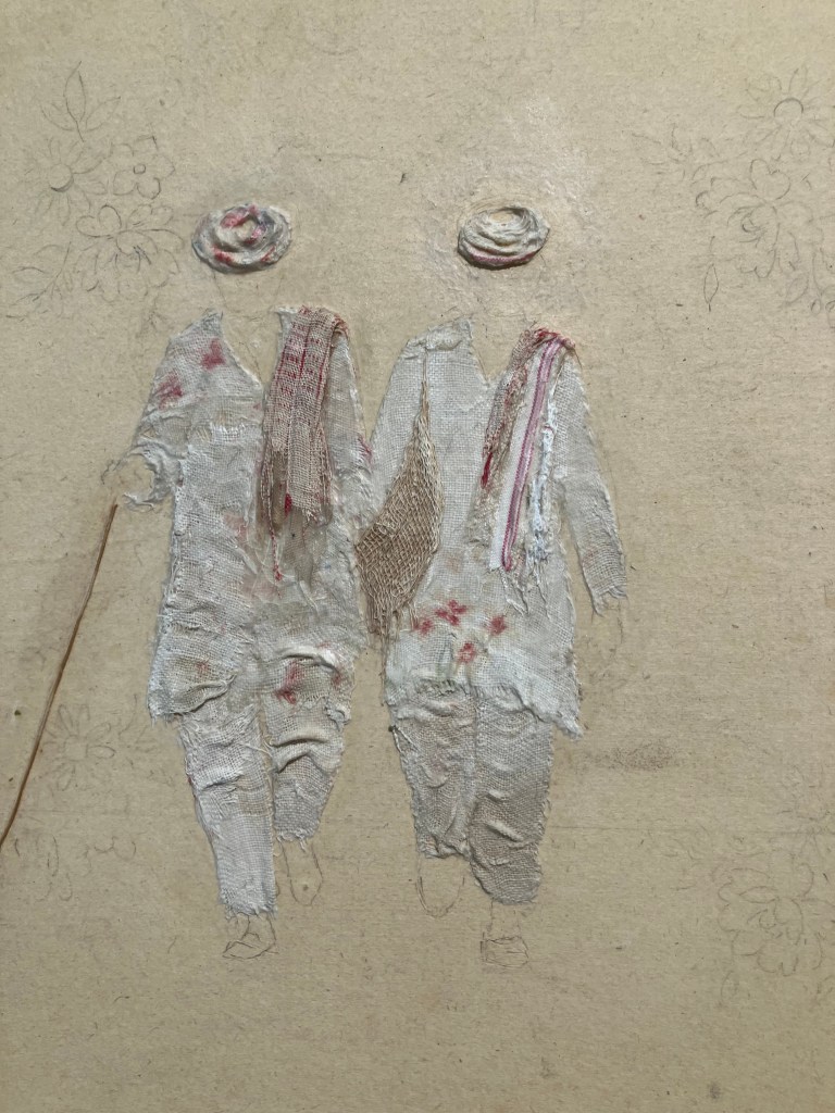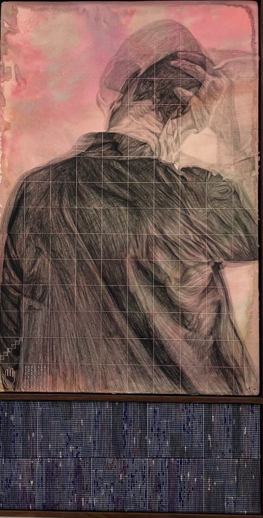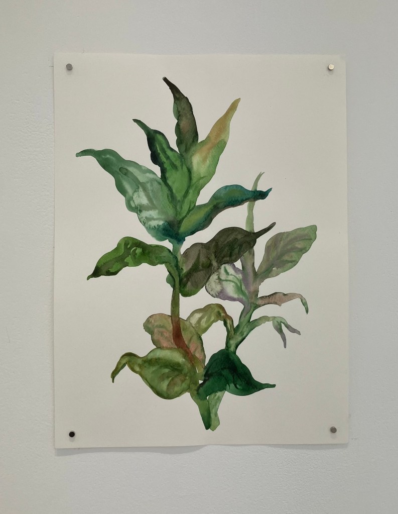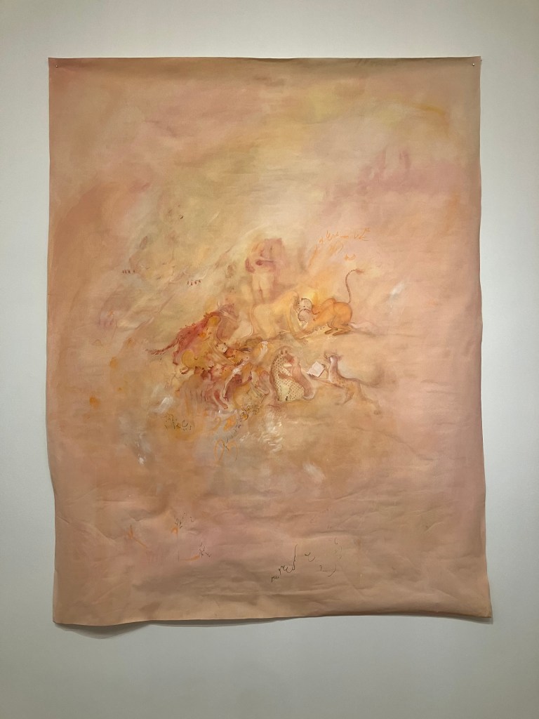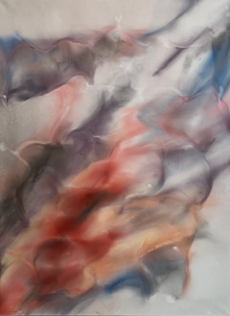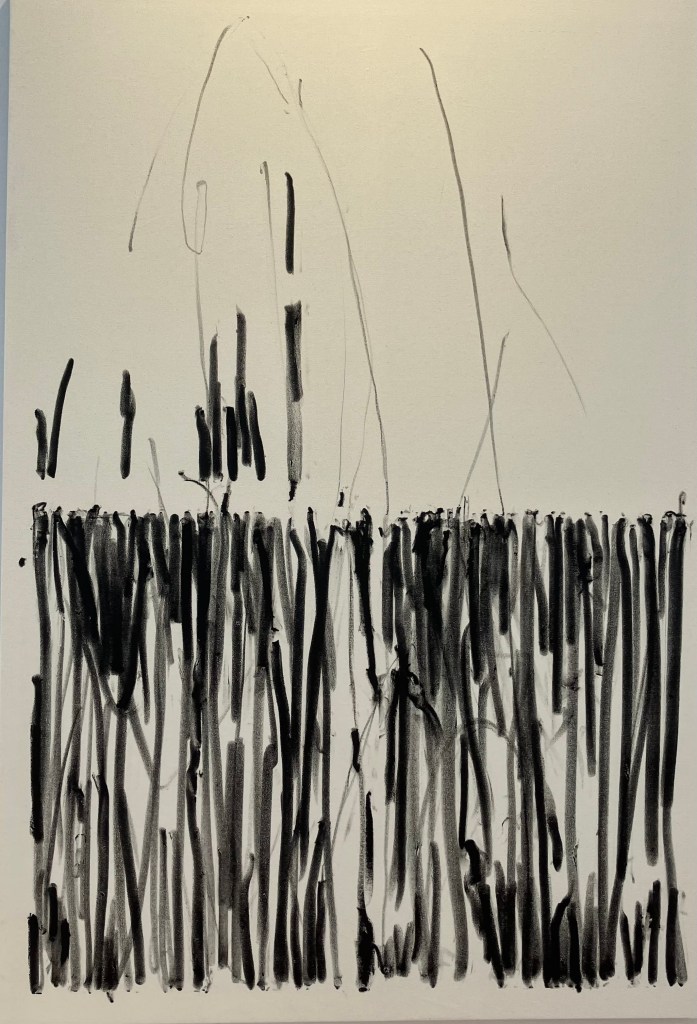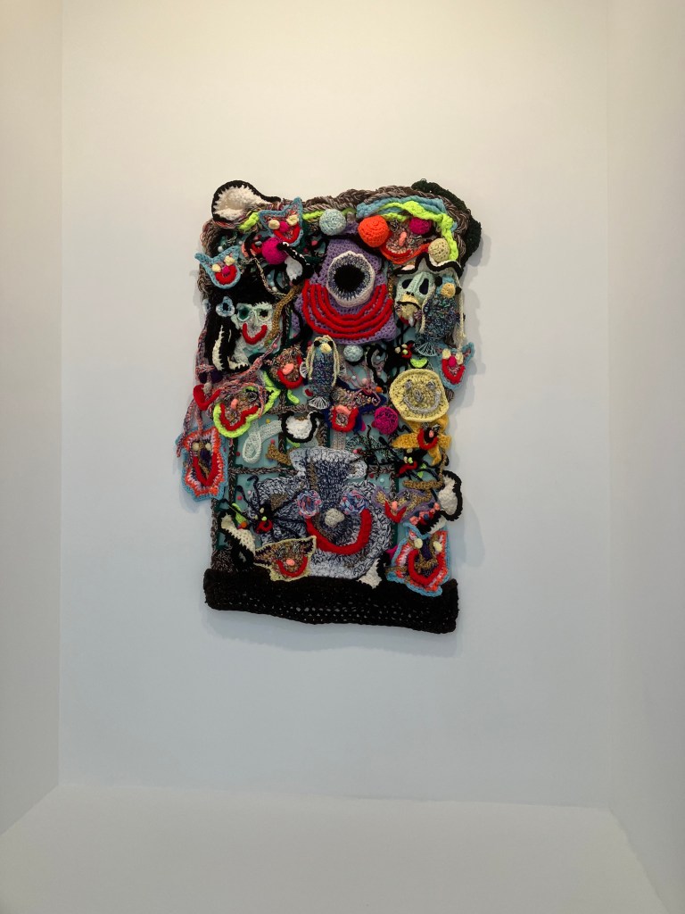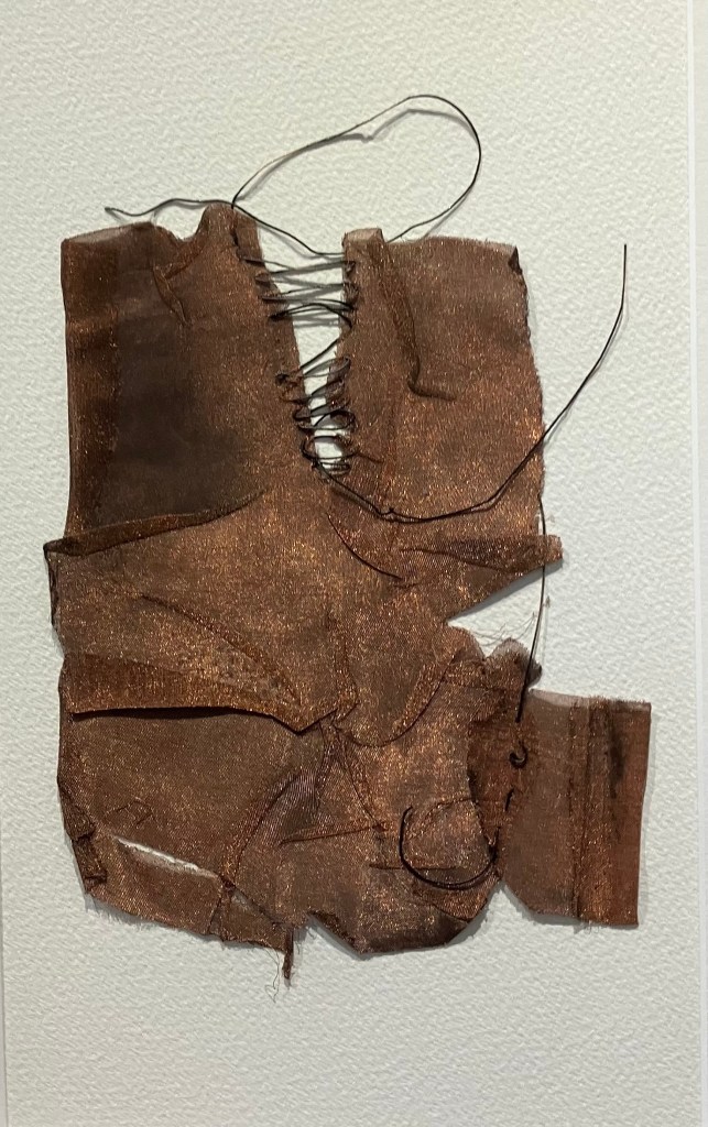 donnait envie d’en savoir plus .Jardin des souffles est présenté jusqu’au 19 avril .Peintures à la tempera sur résines ,sur fragments d’épaves trouvés en Méditerranée ,sur papiers artisanaux , changements d’échelles ,explorent les liens entre l’humain , la nature et le spirituel .