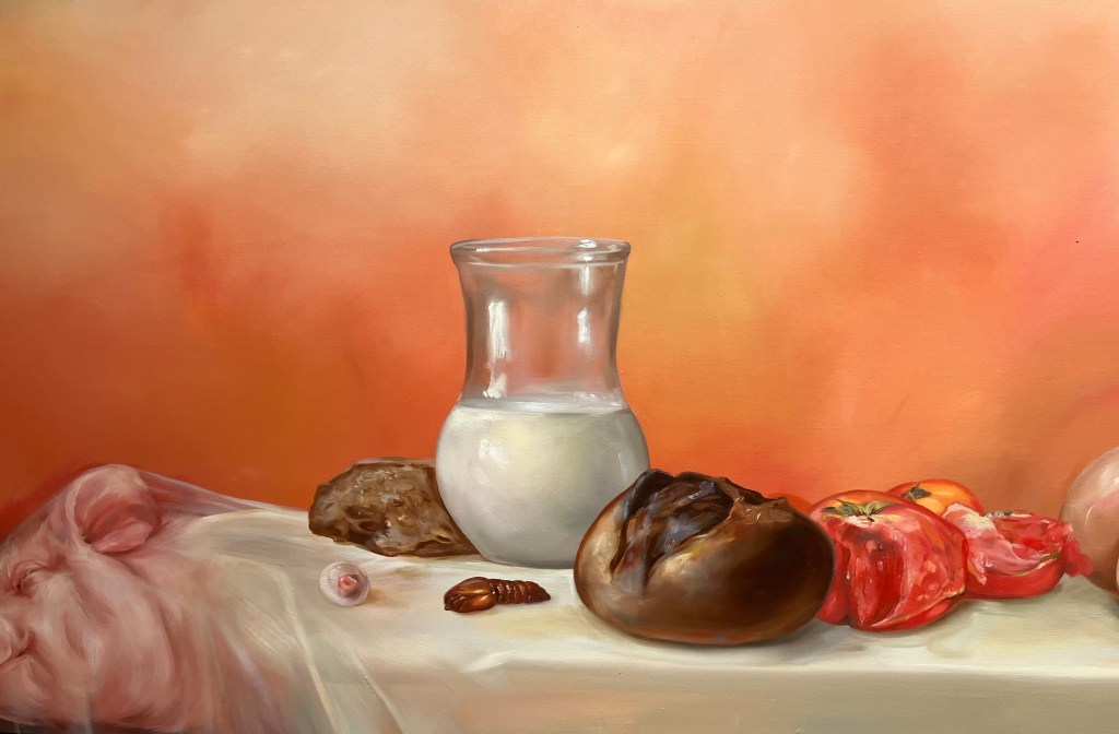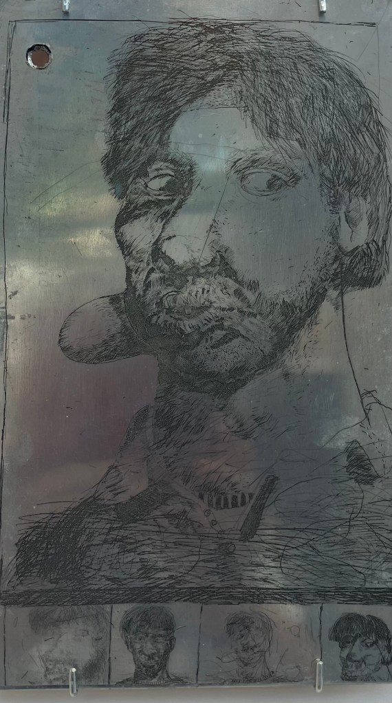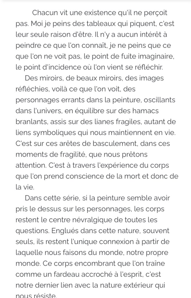 on peut enfin prendre le temps d’admirer mon beau miroir , de Vincent Gicquel , jusqu’au 26 avril , sa palette , ses personnages errants ,entre abstraction et expressionisme .