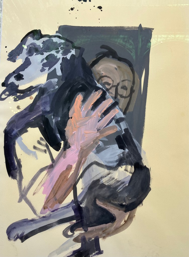 8- Ce tour se complète toujours par une visite rue vieille du Temple , chez David Zwirner . Studio conversations me semblent d’un propos obscur, je n’ai pas l’état d’esprit à vouloir faire des recherches , et m’attarde juste sur un petit tableau .