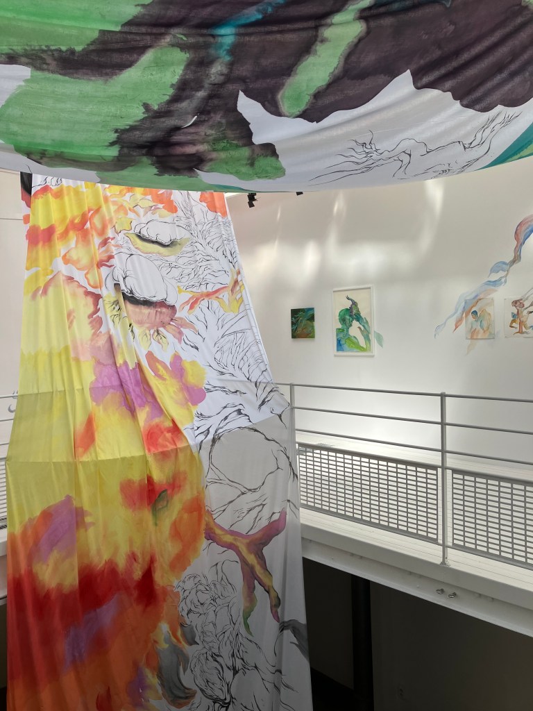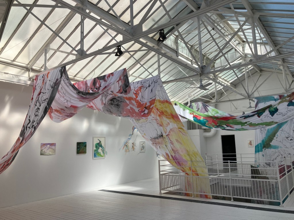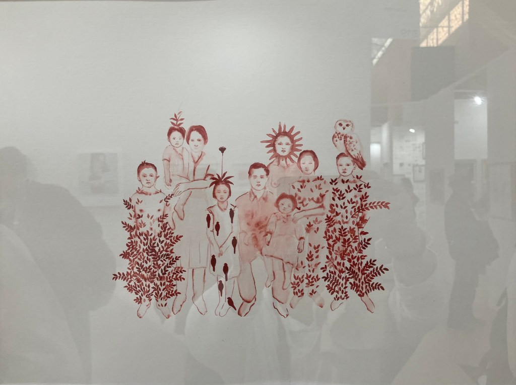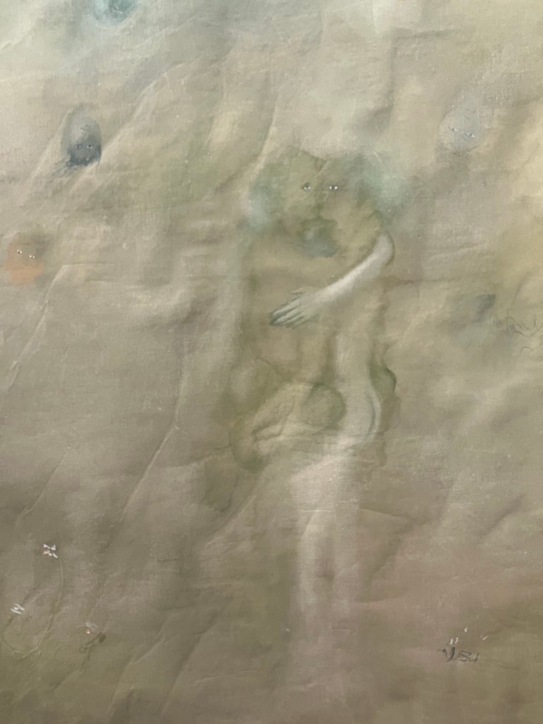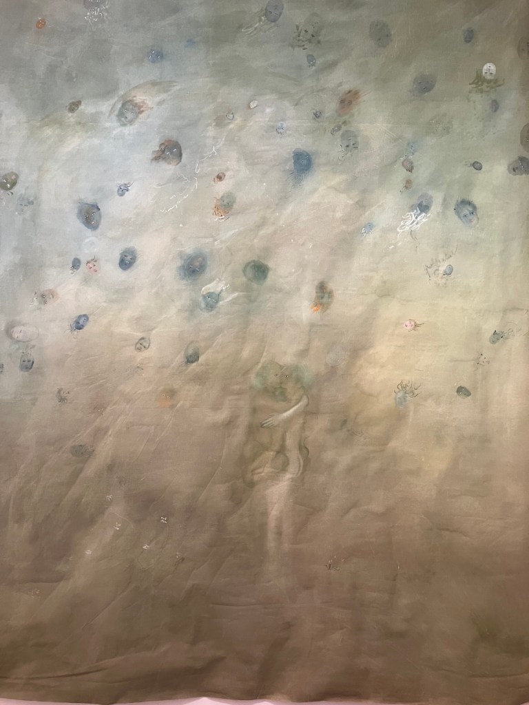 On retrouve ,certes, des thèmes dans l’air du temps: l’ange , l’interconnexion entre individus et environnement ,et la mort .Ici ce sont les esprits de nature , les yokai qui interviennent ..Les mythes sont abordés avec finesse et légèreté , par les tissus , les aquarelles , les couleurs .