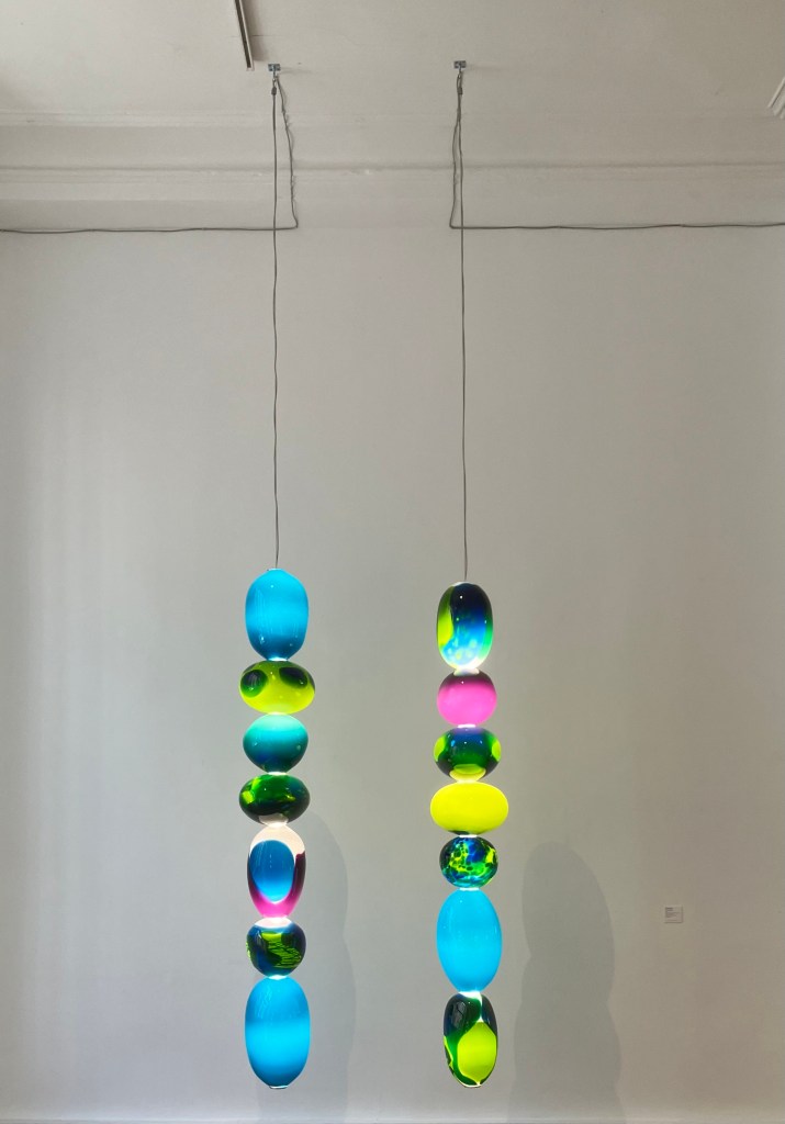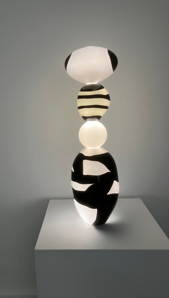 9 En face , chez Maria Wettersten , on sait qu’on va découvrir du très bel artisanat d’art . c’est encore le cas , avec over the rainbow , de Camilla Moberg , qui travaille le verre soufflé et la pierre naturelle .