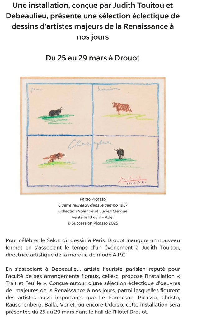 Qad, Le dessin du quartier d’art Drouot , dont les dessins exposés à l’hôtel des ventes ! Christo, Picasso,Rauschenberg , il Parmigiano!