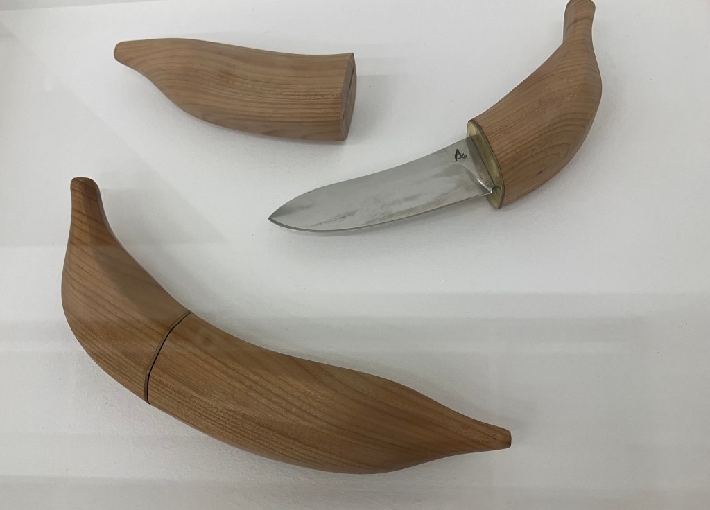 objets modifiés , de tailles différentes, dont beaucoup de petits formats ,maquettes en prévision d’oeuvres installées dans l’espace public,humour .