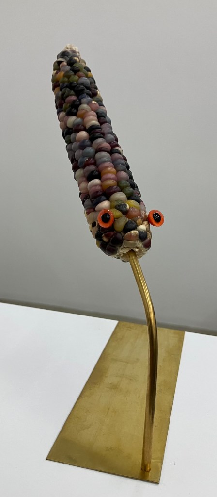 couleurs , figures hybrides , sorte de surréalisme semblent caractériser ses tableaux . J’ai apprécié les 2 sculptures , dont une photographiée ici de différents côtés .