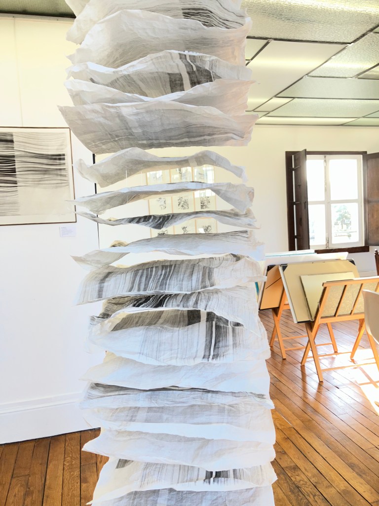 On découvre aussi un leporello vertical de Maria Chillon , de trois mètres de haut .