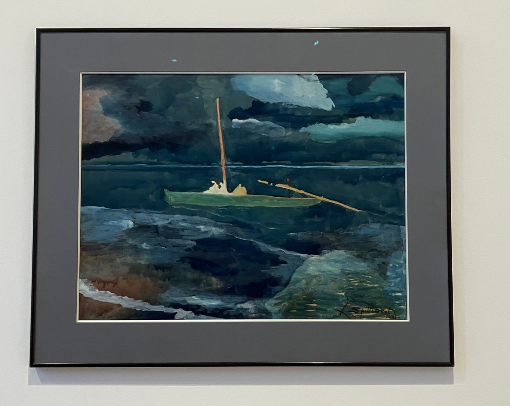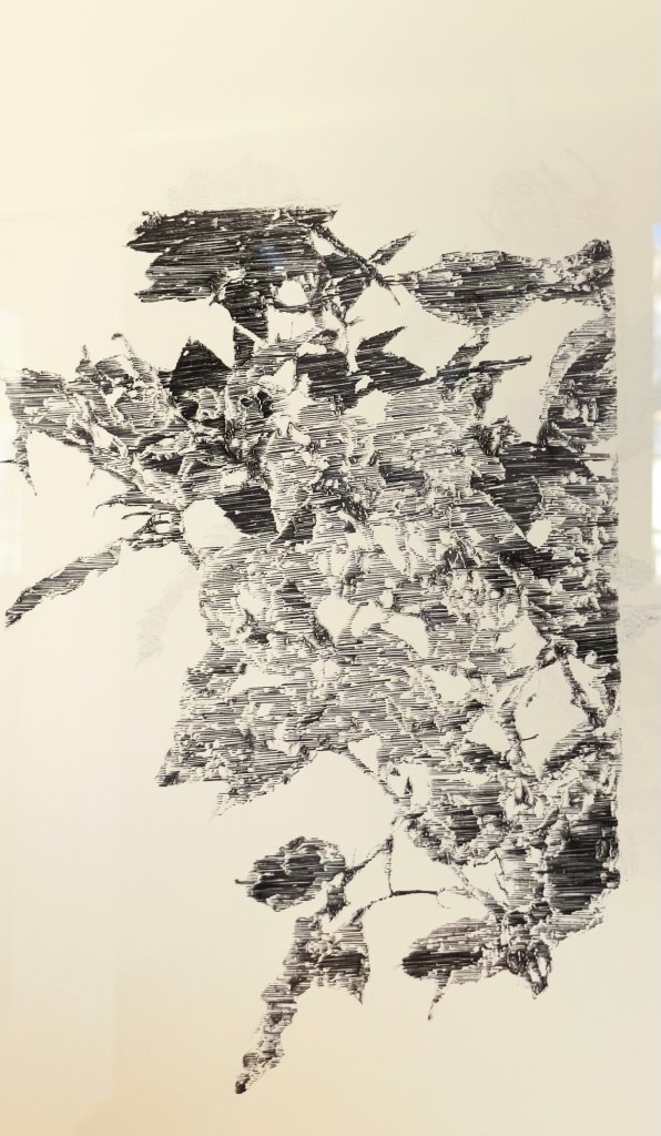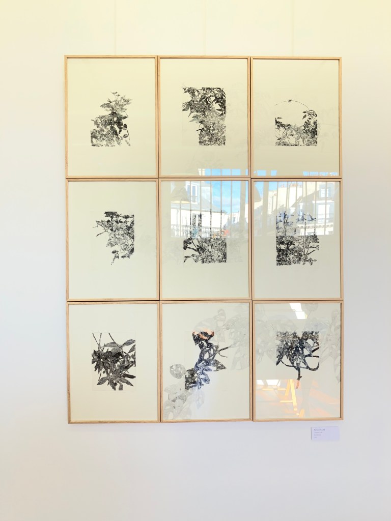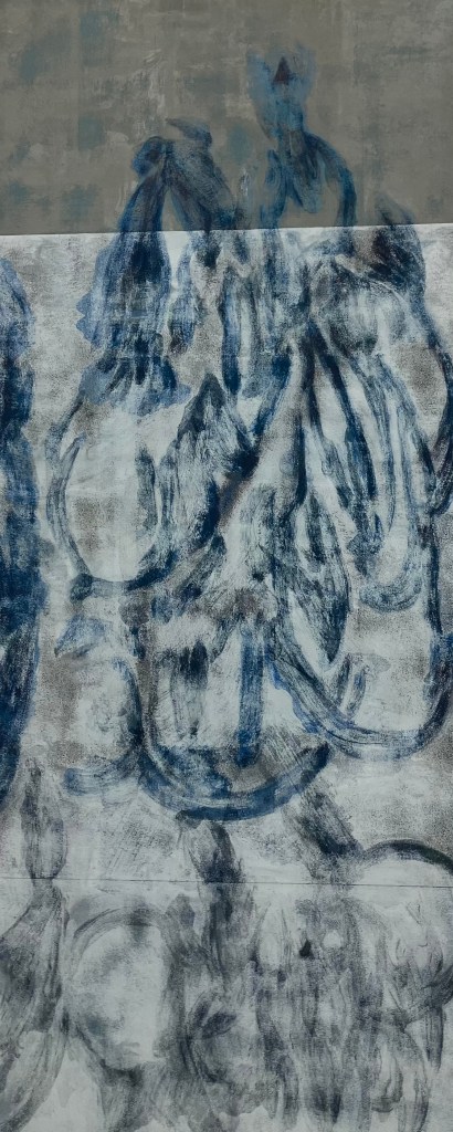 donnait envie d’en savoir plus .Jardin des souffles est présenté jusqu’au 19 avril .Peintures à la tempera sur résines ,sur fragments d’épaves trouvés en Méditerranée ,sur papiers artisanaux , changements d’échelles ,explorent les liens entre l’humain , la nature et le spirituel .