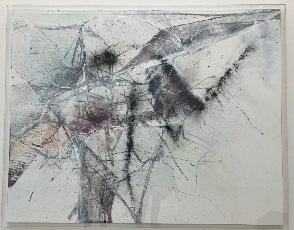 Rue du Grenier Saint Lazare , on retrouve avec plaisir jusqu’au 10 mai la belle technique à la cire de Philippe Cognée , dans ses paysages fragmentés , forêts, paysages maritimes ,ou enneigés , toiles grattées , diluées , en dripping .