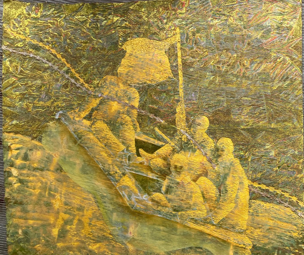 Couleurs et textures , mystères des techniques et des sujets ; superpositions d’empreintes, de linogravures , de pression de l’encre, de gravure sur la toile .
