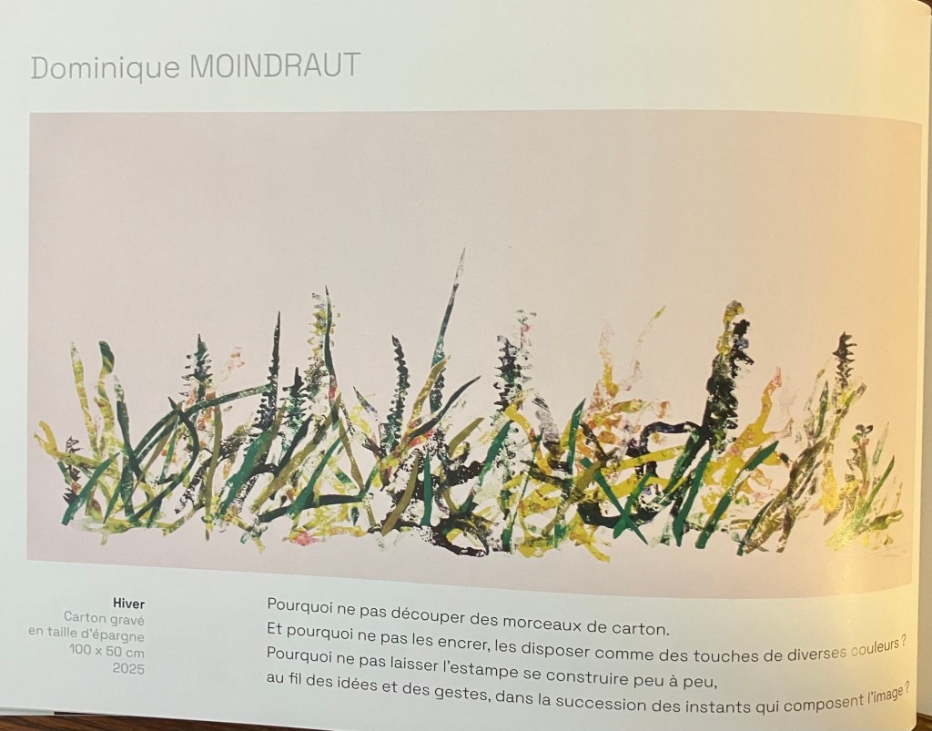 Manifestampe avait indiqué, à tort , le 12 décembre comme date de fin de l’expo émotions de la sociéte des peintres graveurs , et arrivée dans la salle du Vieux Colombier je l’ai trouvée vide , mais Claire Illouz était là, seule , et elle a eu la gentillesse de me remettre le catalogue pour me consoler , quel regret, tout était beau .
